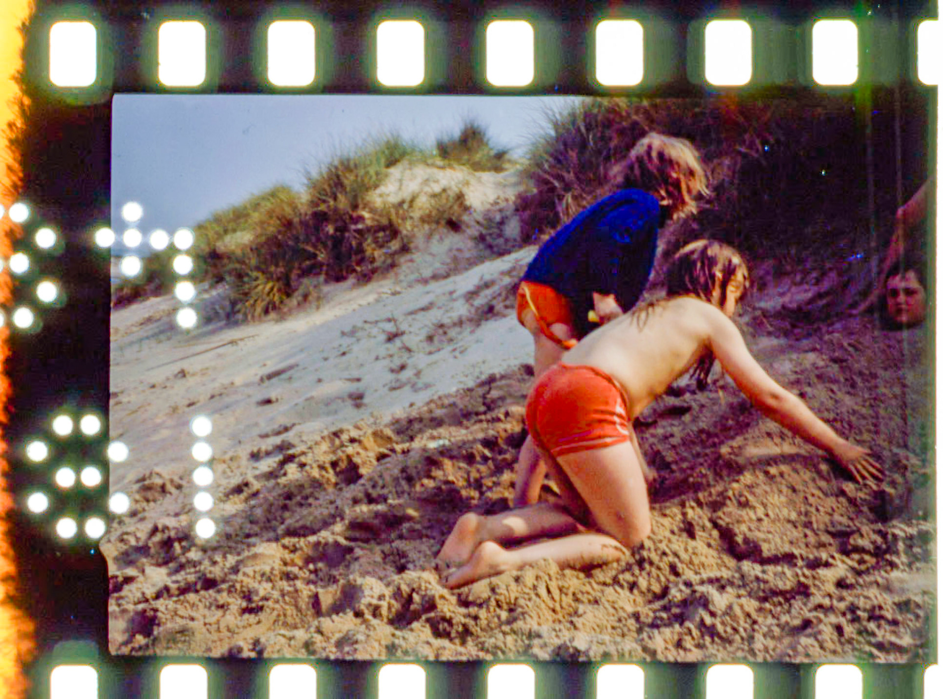 1975 Jan-May - Julian as Charlie Chaplin, Simon Ben & Rachel, Caroline Burghard at Cley, Gileses at