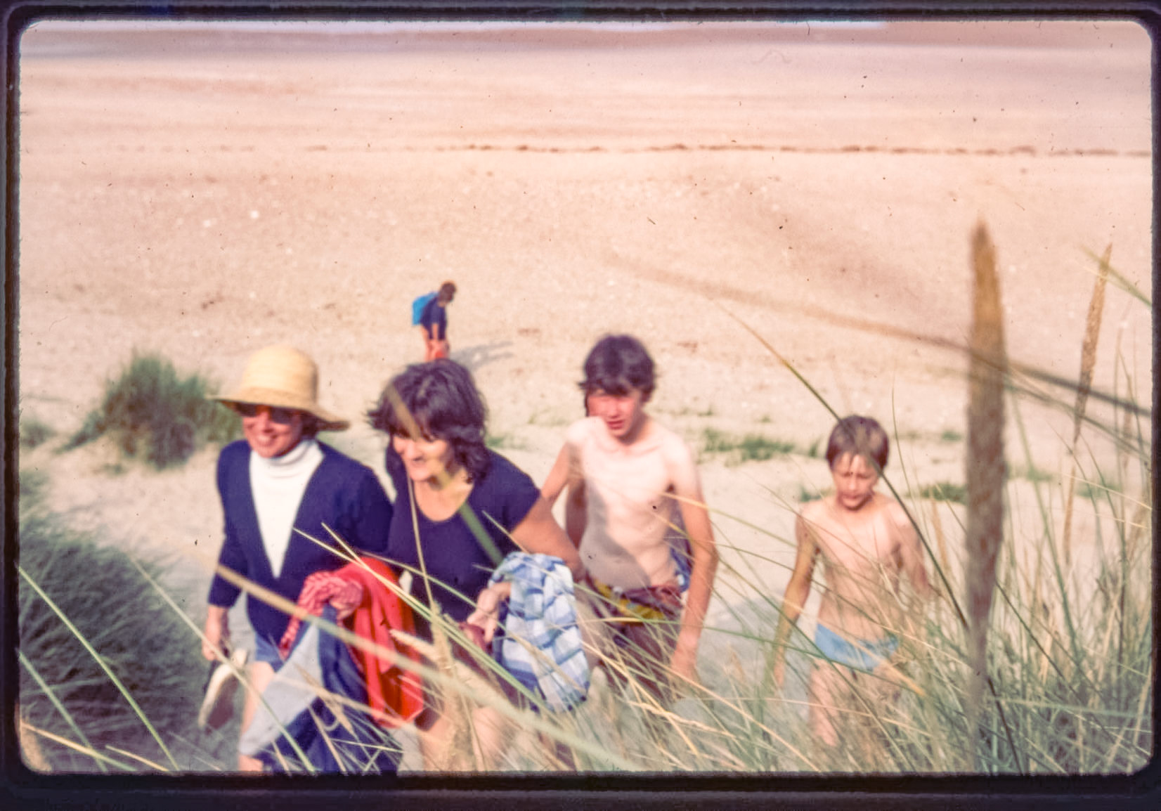 1975 Jan-May - Julian as Charlie Chaplin, Simon Ben & Rachel, Caroline Burghard at Cley, Gileses at